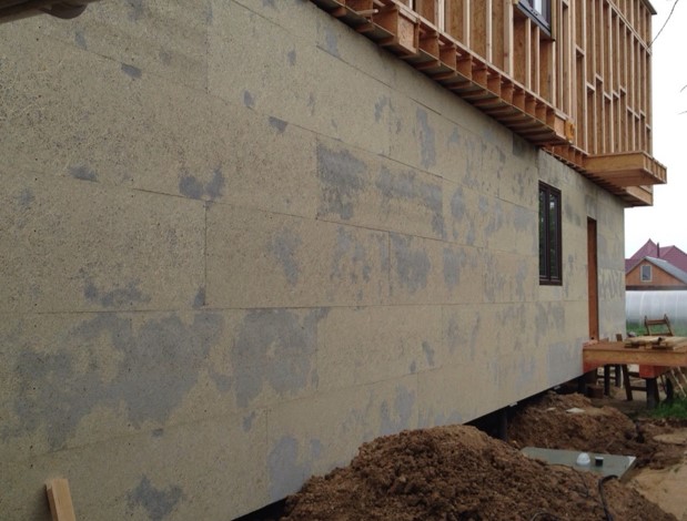 Фибролитовые плиты плотностью 450 кг/м3 и толщиной 35 мм используют для утепления фасадов, создания несъемной опалубки и в прочих конструкциях, где требуется конструкционная жесткость и энергоэффективность. На поверхность плит можно нанести штукатурку и краску.